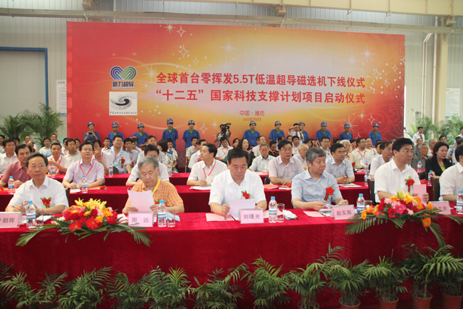人民網濰坊7月2日電 7月1日,全球首臺零揮發5.5T低溫超導磁選機下線儀式和"十二五"國家科技計劃支撐項目“超導磁選機關鍵技術開發”啟動大會在濰坊舉行。