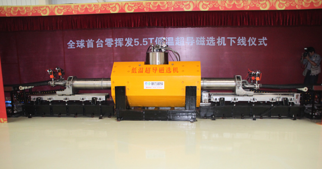 針對國內目前礦石利用率低和礦石品位低的特點,濰坊新力超導磁電科技有限公司與中科院高能物理研究所于2010年10月開始聯合研制零揮發低溫超導磁選機。由于超導線圈的電阻為零,消耗的能量極少,能在不退磁的狀況下實現連續工作,能耗僅為普通電磁設備的10%,生產效率是普通電磁設備的10倍以上,在處理鐵礦尾礦、弱磁性金屬礦及高嶺土、鉀鈉長石、高純石英等非金屬礦中的氧化鐵及弱磁性物質方面具有明顯的優勢,具有極大的經濟和社會效益。