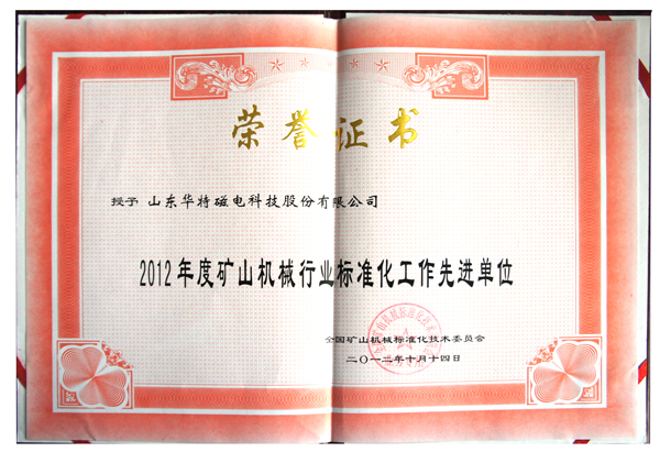 近幾年來,我公司進一步強化了標準化工作,先后加入了全國礦山機械標準化技術委員會、全國磁力材料及設備標準化工作組和煤炭行業煤礦專用設備標準化技術委員會選礦機械分會等國家標準化組織,主持和參與制(修)定了《超導除鐵器》、《對噴式礦物氣流磨》、《筒輥式永磁強磁選機》、《立盤式永磁尾礦回收機》、《懸掛式電磁除鐵器》、《立環式電磁感應強磁選機》等國家行業標準10余項,對于規范行業行為,促進行業技術進步起了積極的推動作用。