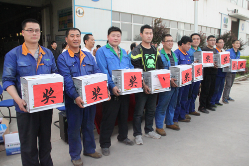 公司董事長兼總裁王兆連為優(yōu)勝者頒發(fā)獎(jiǎng)品并作重要講話。王兆連董事長在講話中向獲獎(jiǎng)?wù)弑硎咀YR,祝賀他們?nèi)〉玫膬?yōu)異成績。并勉勵(lì)大家發(fā)揚(yáng)拼搏精神,再接再厲,在今后工作中取得優(yōu)異成績。