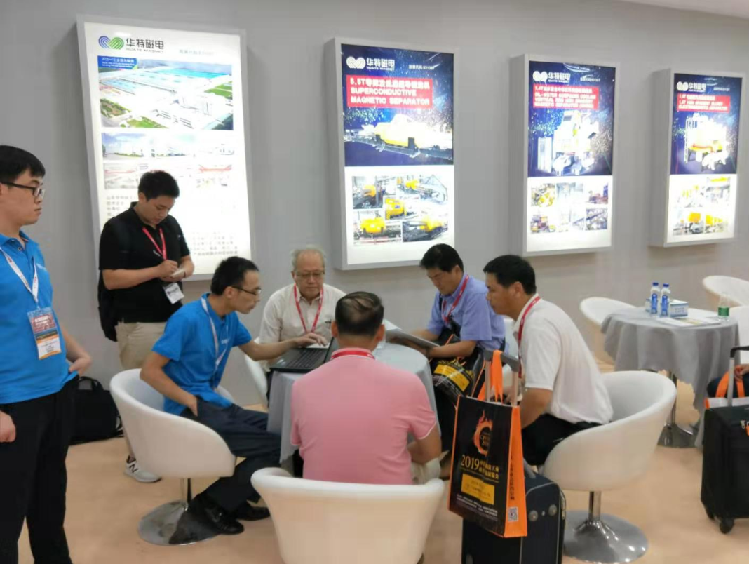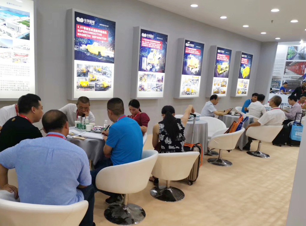 本次展會,華特磁電攜1.8T強油冷卻立環(huán)高梯度磁選機、1.5T電磁漿料高梯度磁選機、5.5T低溫超導(dǎo)磁選機、單傳動高壓輥磨機,濕式強磁板式磁選機等核心產(chǎn)品盛裝亮相,四天展期中,蒞臨展位參觀的客戶絡(luò)繹不絕。