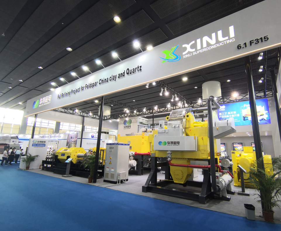 華特1.5T電磁漿料高梯度磁選機,以超高的顏值和霸氣的形象,吸引了大量觀眾合影。此款設(shè)備采用全密封外循環(huán)冷卻系統(tǒng),背景場強可達(dá)到1.5T,針對不同的物料可選配多種特制的導(dǎo)磁不銹鋼介質(zhì),適用于高嶺土、長石、石英、鋸泥、陶土等中、細(xì)粒礦物的除鐵提純,也可用于鋼廠、發(fā)電廠的廢水處理及清洗被污染的化工原料等。其強大的智能操控系統(tǒng)和優(yōu)質(zhì)的創(chuàng)新性能,滿足各個陶瓷原料領(lǐng)域的提純需要,獲得了國內(nèi)外客戶的高度認(rèn)可。