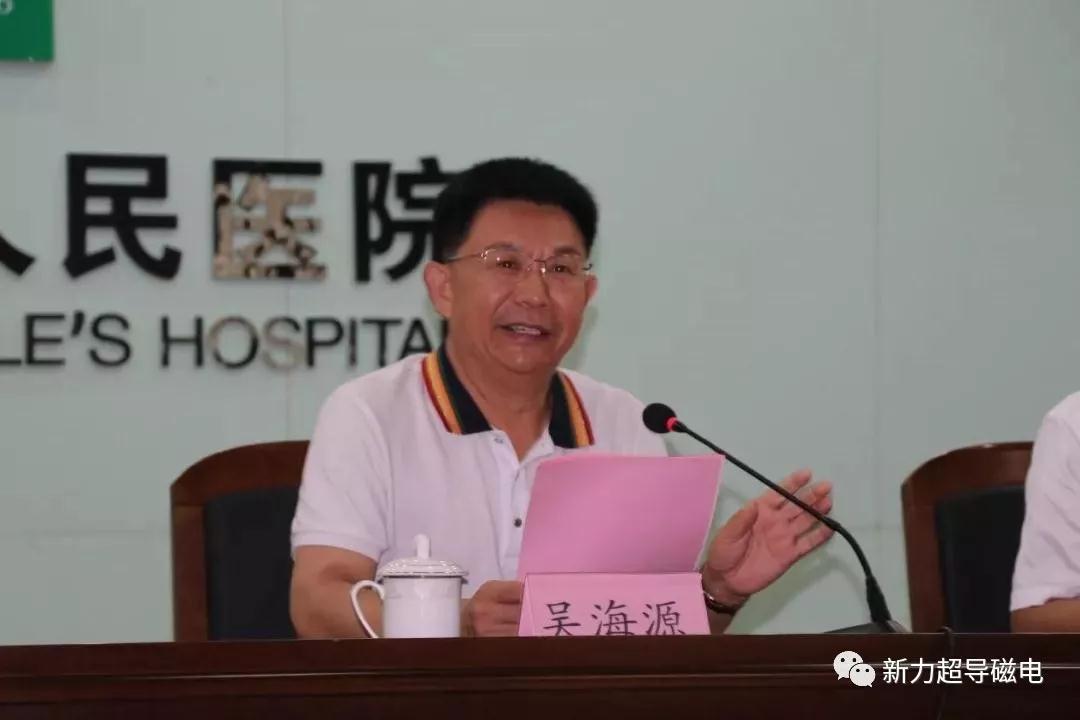 2019年8月27日,濰坊新力超導(dǎo)公司中標(biāo)的寒亭區(qū)人民醫(yī)院1.5T超導(dǎo)磁共振啟動儀式在寒亭區(qū)人民醫(yī)院舉行。開機(jī)儀式在濰坊市人民醫(yī)院寒亭院區(qū)大會議室舉行,大會由寒亭院區(qū)院長秦德春院長主持。濰坊市衛(wèi)健委黨組書記、主任吳海源、寒亭區(qū)政府副區(qū)長李培進(jìn)、濰坊市人民醫(yī)院黨委書記張曉乙,寒亭區(qū)衛(wèi)健局黨組書記、局長李中強(qiáng)、寒亭院區(qū)黨委書記豐義寬、山東省醫(yī)學(xué)影像研究所教授劉作勤,濰坊醫(yī)學(xué)院附屬醫(yī)院教授曹貴文,濰坊市人民醫(yī)院教授耿海,山東省政協(xié)常委、新力公司董事長王兆連等出席會議,區(qū)醫(yī)聯(lián)體成員單位負(fù)責(zé)人及醫(yī)院全體干部職工代表200余人參加會議。