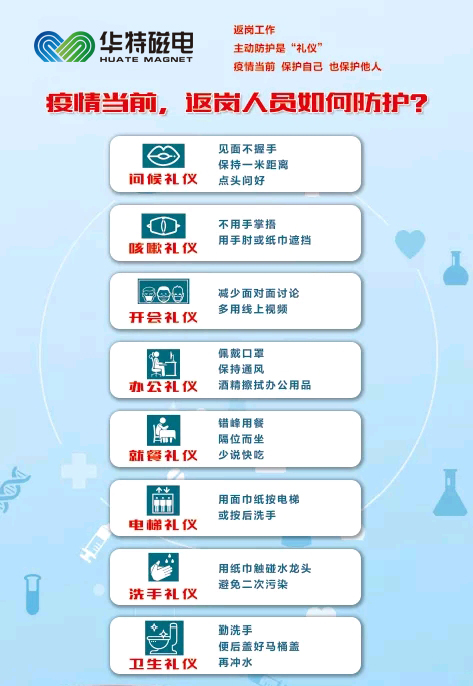 為確保復(fù)工員工身心健康,疫情期間員工主動(dòng)防疫是關(guān)鍵,請(qǐng)各位員工按照以下措施做好自我防護(hù)。